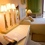 Furnished with a writing table, the 26 rooms also include such conveniences as a flat-screen TV with satellite channels, along with a mini-fridge-bar. Bathrooms inlude a bidet, a separate toilet, and a shower, and such fine comforts as hairdryers and shower caps. Some of these rooms also look out over the sea.